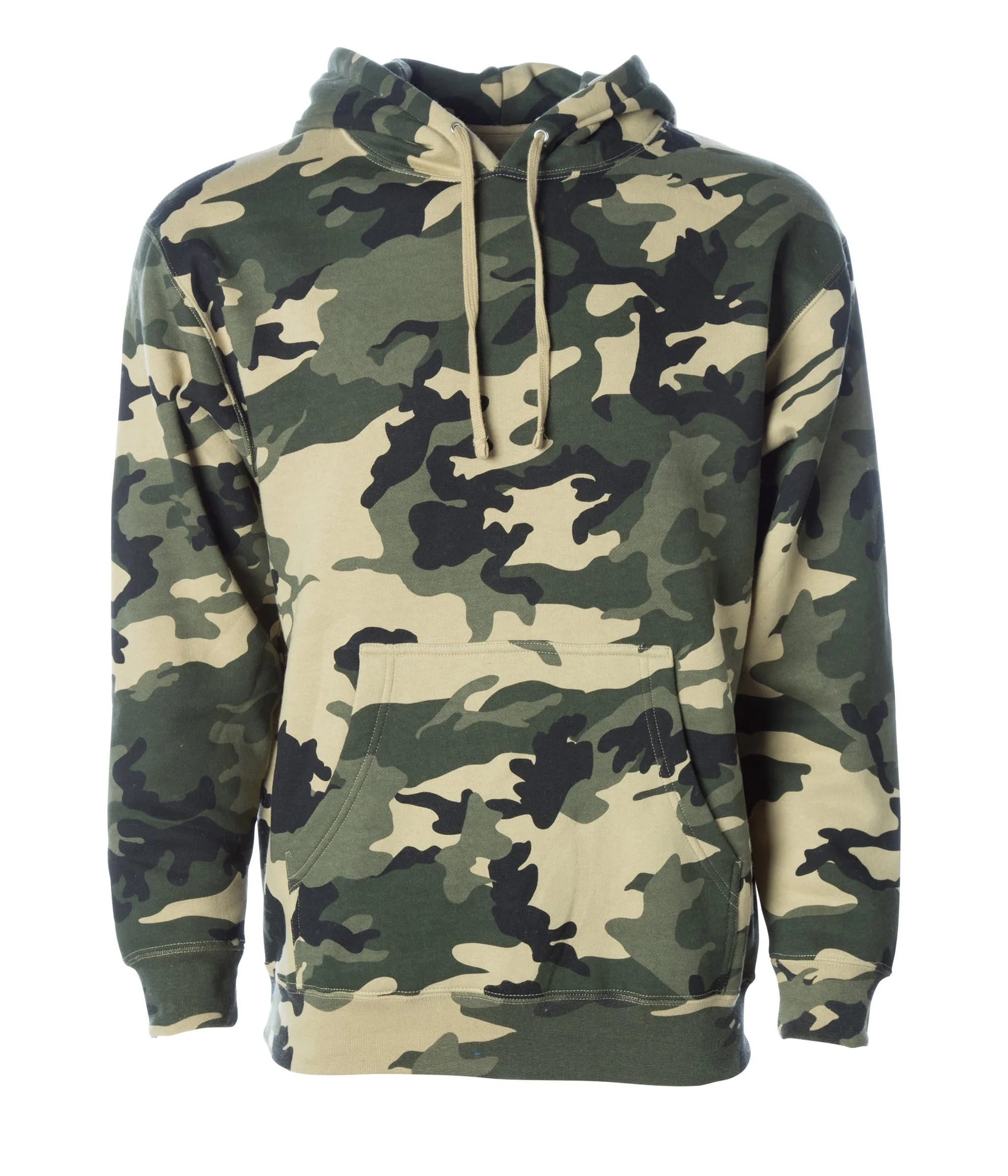 • Camo Colors: 75% Cotton/25% Polyester with 100% cotton 32 singles face yarn (Forest Camo, Black Camo, Tiger Camo, Army Camo & Snow Camo)
