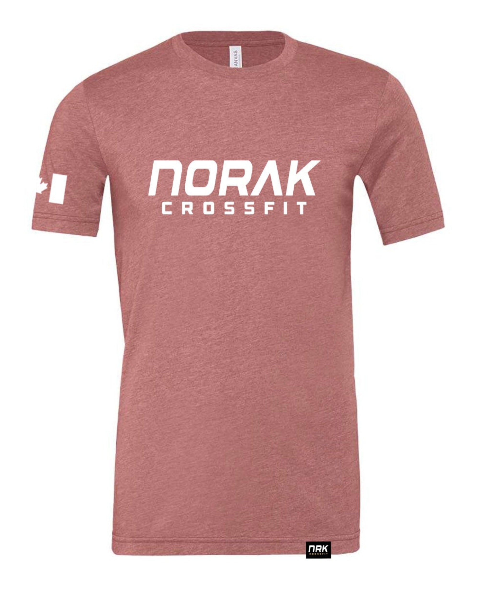 Features NORAK CrossFit chest print with Canadian flag on right arm and NRK hem tag.